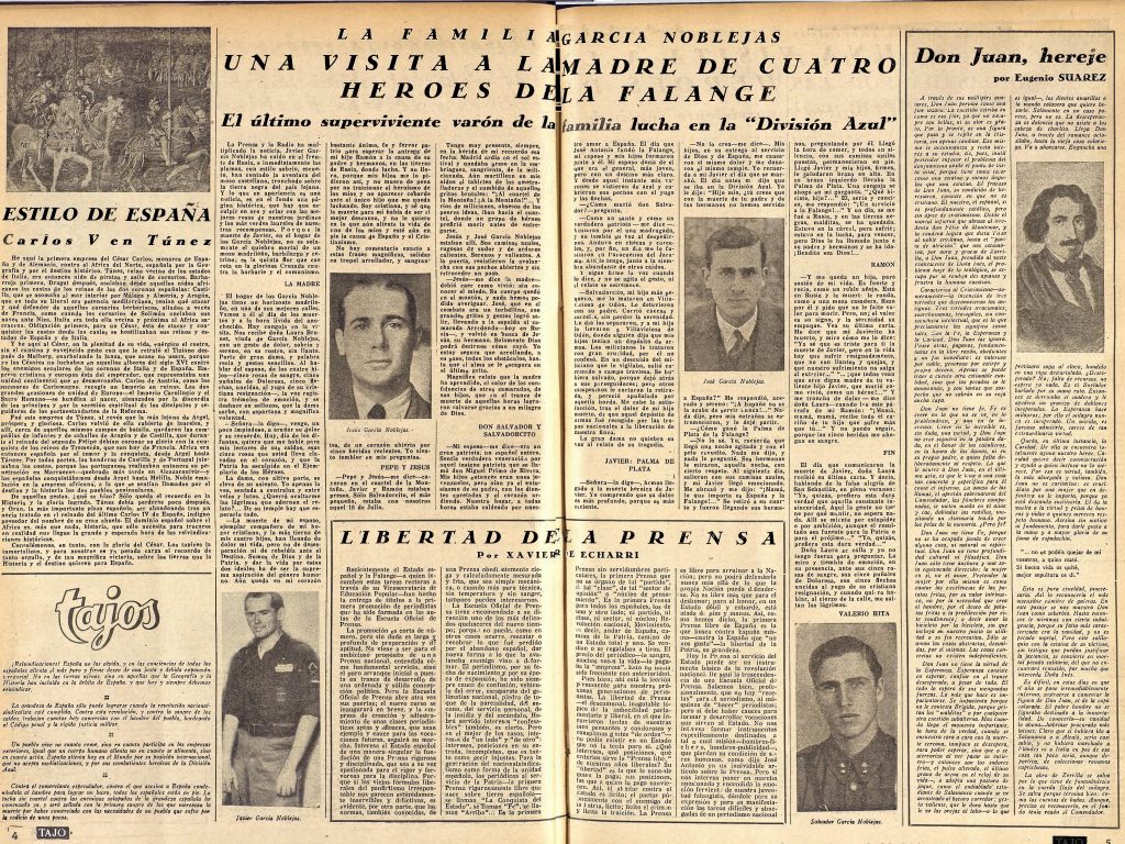 Aquí hacemos un inciso para incluir un fragmento de la misma entrevista a la madre de los García-Noblejas en la revista Tajo en los años 40: