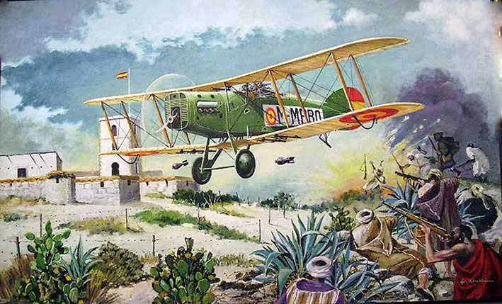 Aquel año fue llamado para asistir al curso de observadores de aeroplano, en Cuatro Vientos, completándolo en Los Alcázares, yendo destinado al Grupo de Breguet XIX con el que marchó a Melilla encuadrado en la 1.ª Escuadrilla que estaba mandada por el Capitán Barberán; con ella tomó parte, en 1925, desde el aeródromo de Tauima, en misiones de reconocimiento y bombardeo preparatorias del desembarco de Alhucemas.