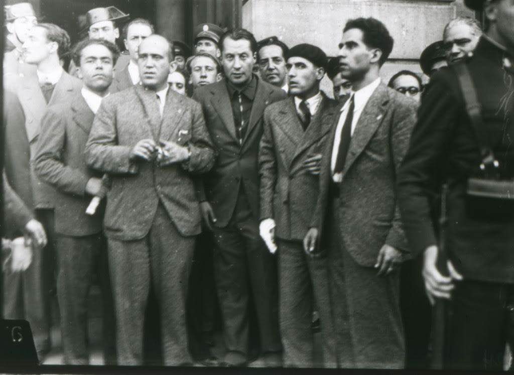 El 7 de Octubre de 1934 al terminar el Consejo Nacional y como consecuencia de la Revolución de Asturias se inició de forma espontanea una manifestación desde la sede de Falange Española en el hotelito de la calle Marques de Riscal hasta el Ministerio de la Gobernación en la Puerta del Sol. En la cabecera de esta protesta se puede ver claramente a José Antonio Primo de Rivera, Julio Ruiz de Alda (del brazo de José Antonio), Manuel Valdés Larrañaga (junto a Julio) al pequeño Vicente Gaceo (agarrado a José Antonio por la izquierda) y a Ramiro Ledesma Ramos (con boina negra detrás de Vicente).