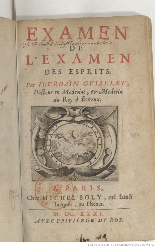 Por desgracia, no tuvo continuadores; sólo un médico francés, un siglo más tarde, después de haber leído la obra de Huarte, dió un paso más, y en su libro Examen del examen de los espíritus dice J. Guibelet [4] que el factor decisivo para elegir con garantía de éxito una carrera es la «afección» o inclinación hacia la misma,